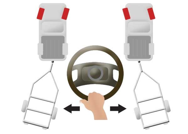 When backing the boat trailer, put your hand on the bottom of the steering wheel. When your hand moves left or right, the trailer will go in the same direction.